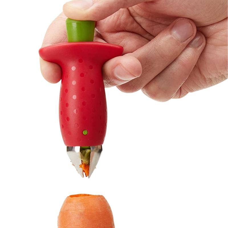 Muy práctico, un gadget original que realmente es útil y ahorras tiempo en la preparación de los fresones, no lo he probado con las fresas.